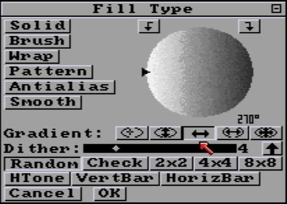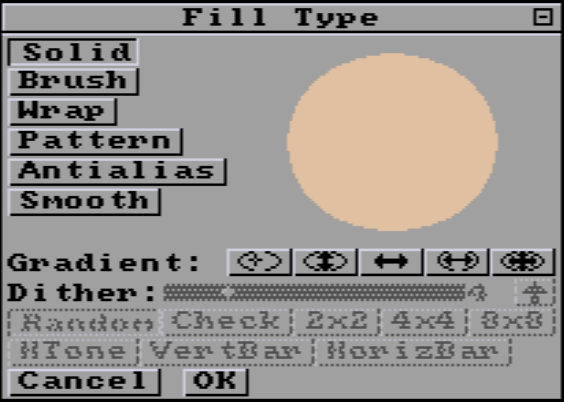 or the lower-right half of most drawing tools displays this Fill Type requester: