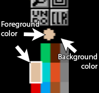 You see a zone below the Undo and CLR button and above the color palette : a rectange with a large dot in the center. The dot is always displaying the Foreground color. The rectangle is always of the color of the Background color.