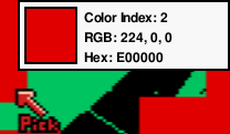 The mouse pointer changes to a pipette with a information bubble displaying the current color index and RGB values.